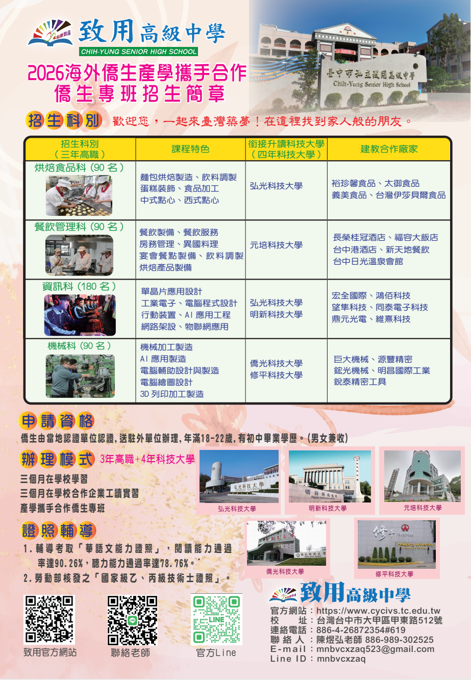 致用高中僑生建教班歡迎入學
